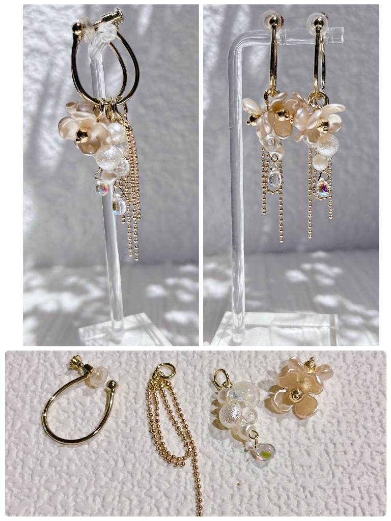 金属アレルギーの方にも安心して使っていただけるよう、イヤリング・ピアスのみパーツの交換が可能となっておりますのでお気軽にご相談ください。(ネックレス不可)